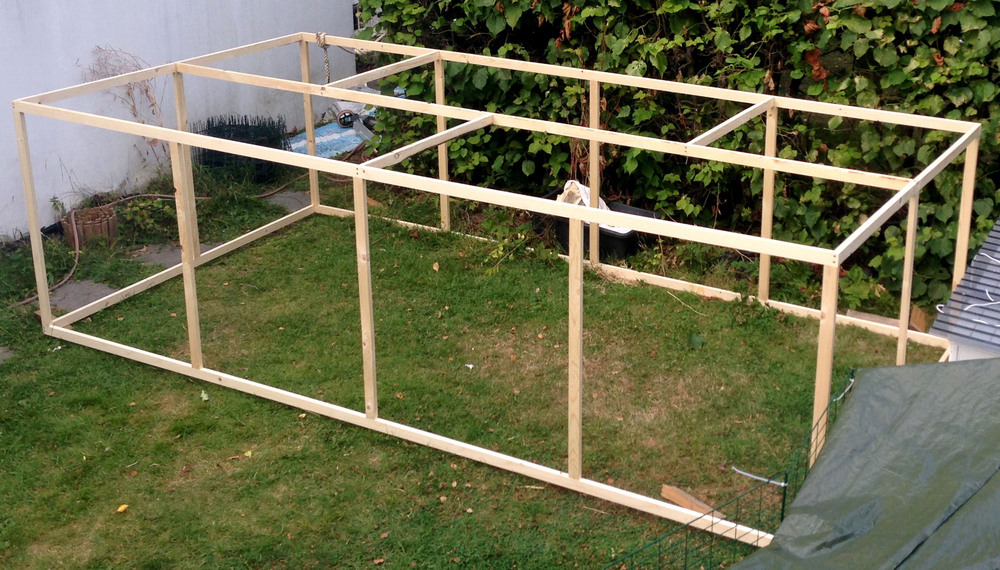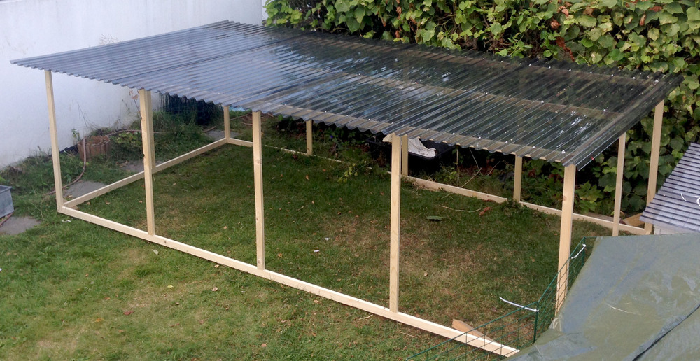 On Thursday evening I took a trip to Maxbo and purchased the wood (untreated in case the rabbits gnaw on it) and some plastic roofing plates - colour is called soot - hopefully it will provide some shade while still letting some light in.