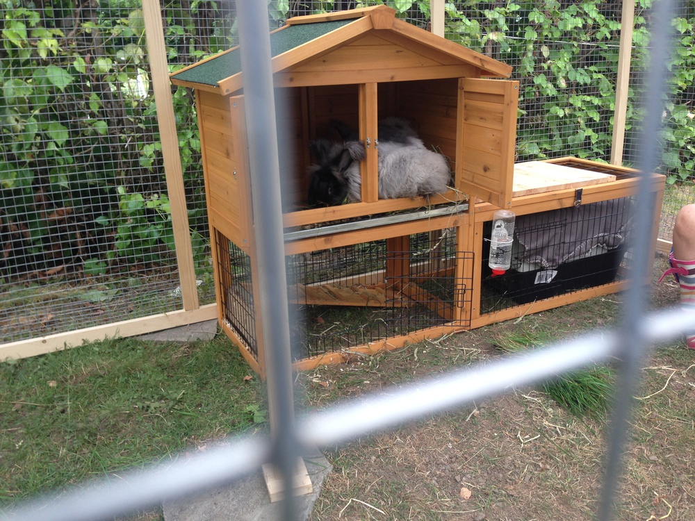 We recently took over two female angora rabbits - while we were on holiday, they've had two weeks at the summer hut. Now we're back home and will need to leave them unattended - they need a run.