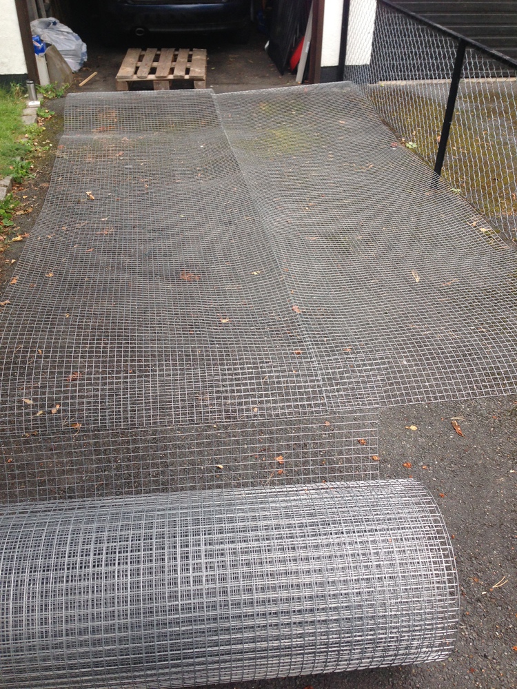 Now - finding fox proof netting turned out to be hard. In the end - we found a website for a firm based in Ramnes (near Tønsberg) D. Johansen Husdyrutstyr who had galvanised netting with a 1" square grid - 1.2m high, 25m long and with 1,75mm thick wire. To top it off - they were doing a free delivery run around the region on Sunday. Perfect size, grid, thickness and timing.